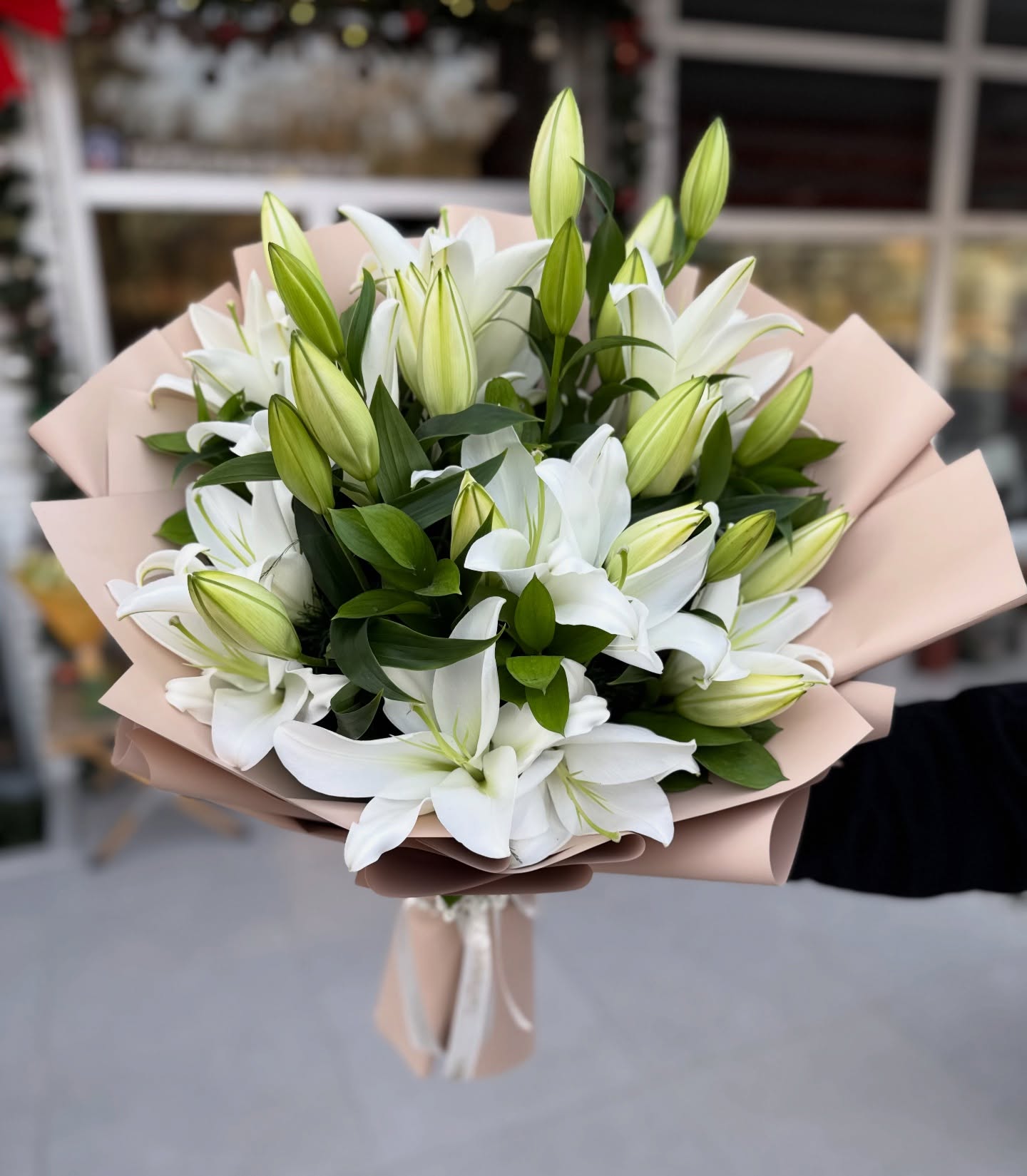 Beyaz lilyum buketi