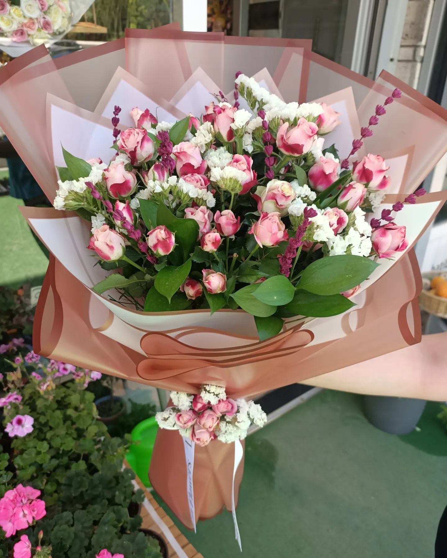 Pembe ve lila gül Buketi