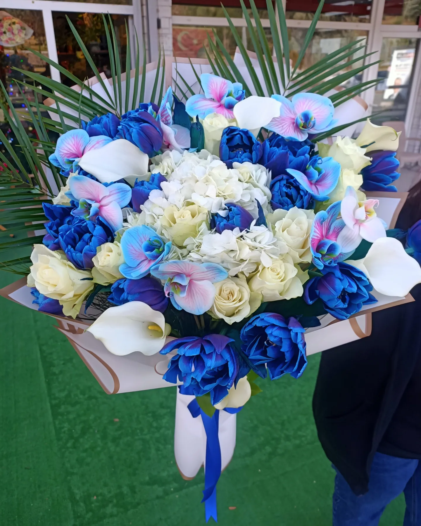 Mavi lale ve orkide Buketi