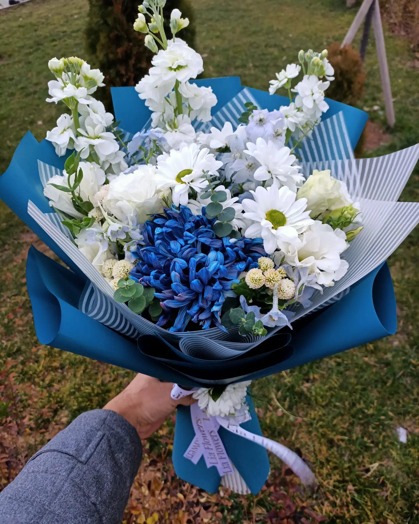 Mavi lale ve beyaz frezya Buketi