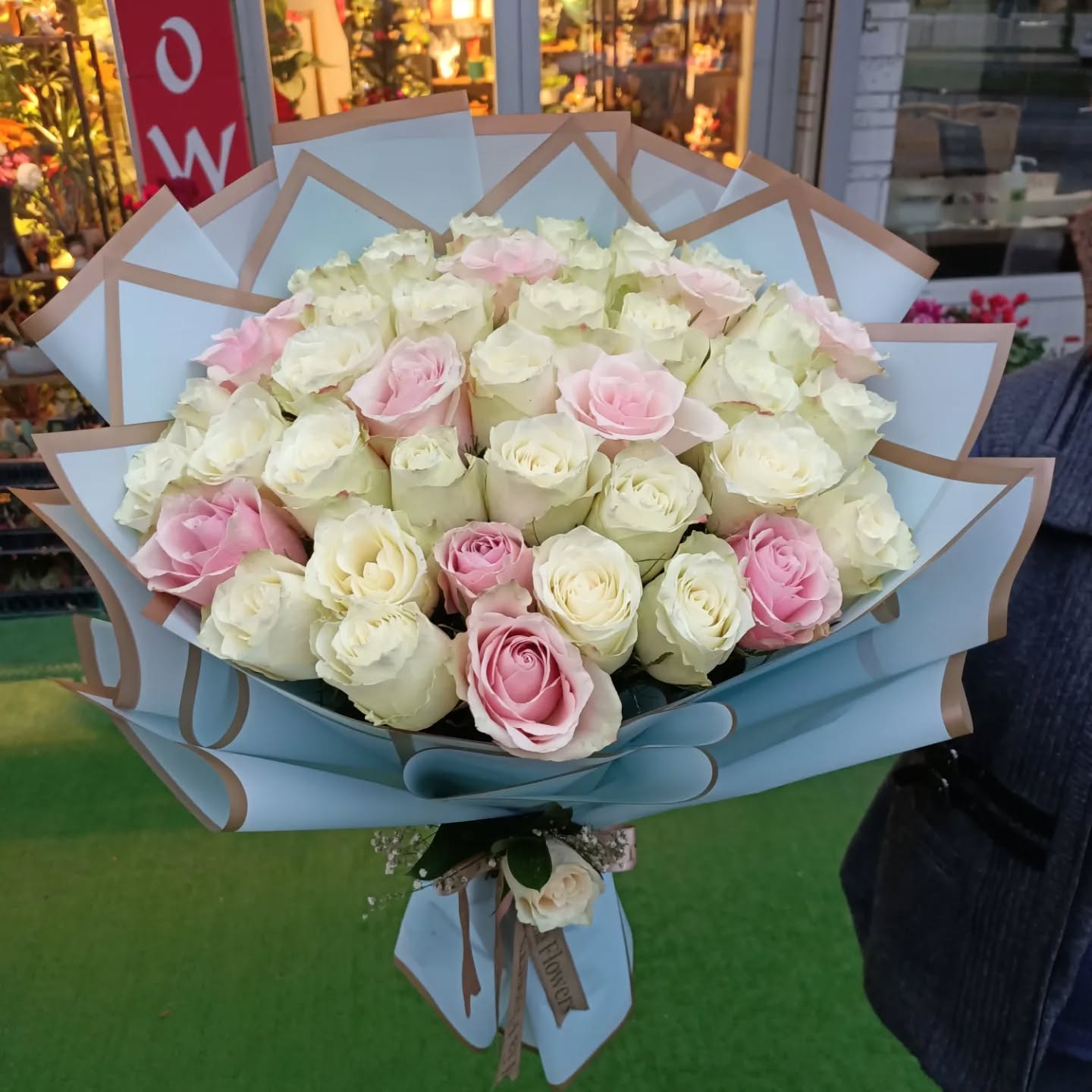 Pembe & beyaz 41 adet Gül buketi