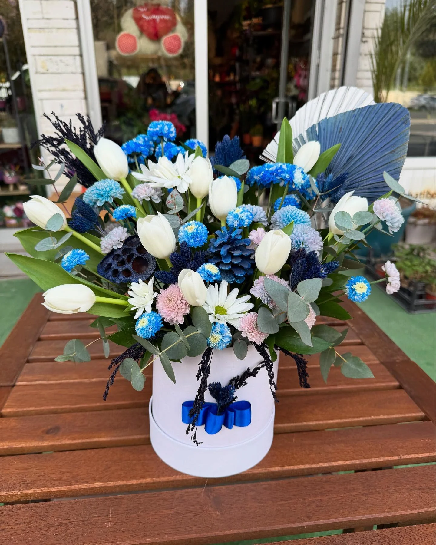 Mavi Beyaz Lale & Papatya Aranjmanı