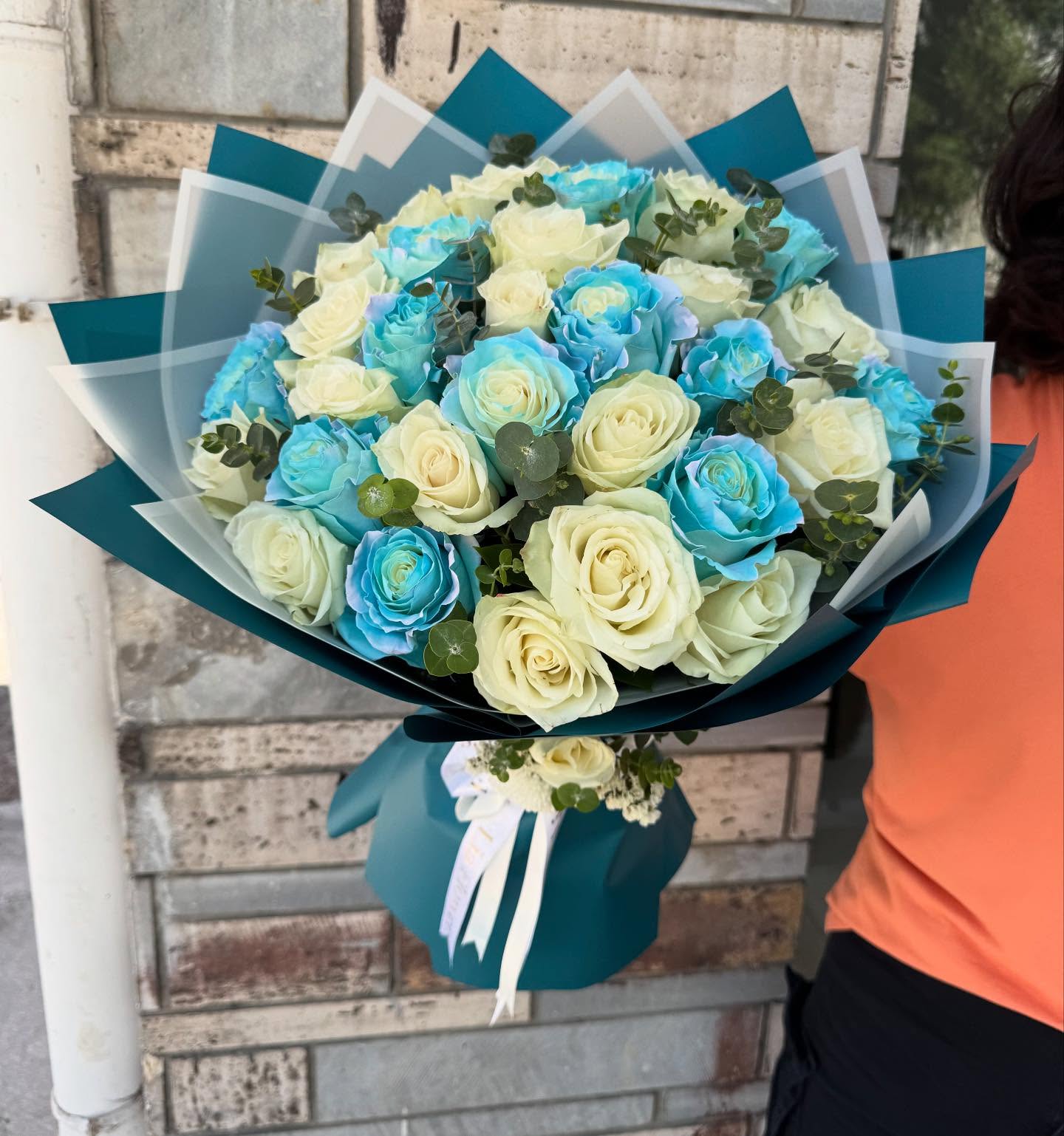 Mavi ekvator gülleri ve beyaz güller