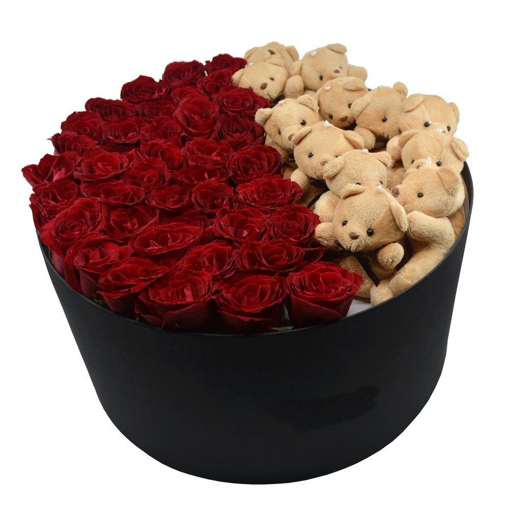 Kutuda Ayıcıklı Kırmızı Gül