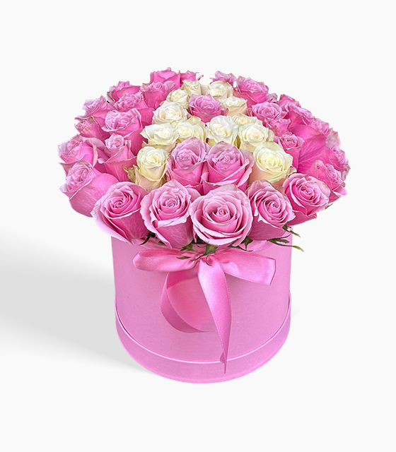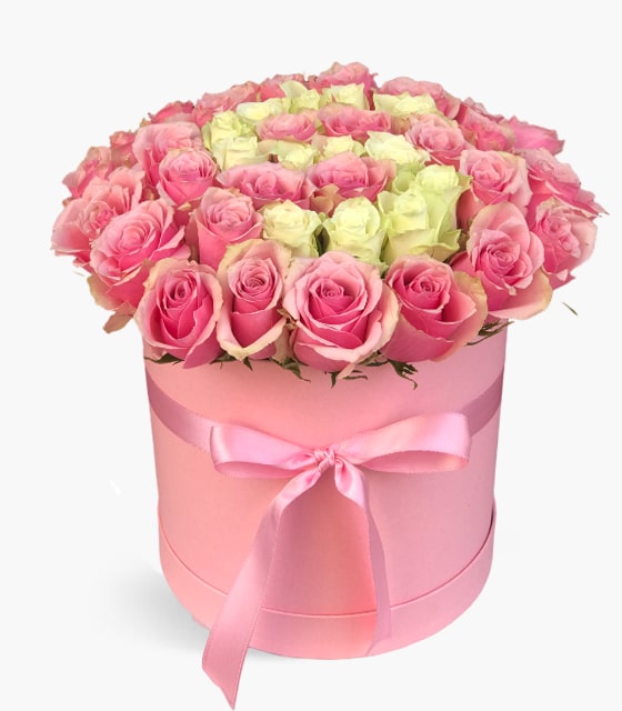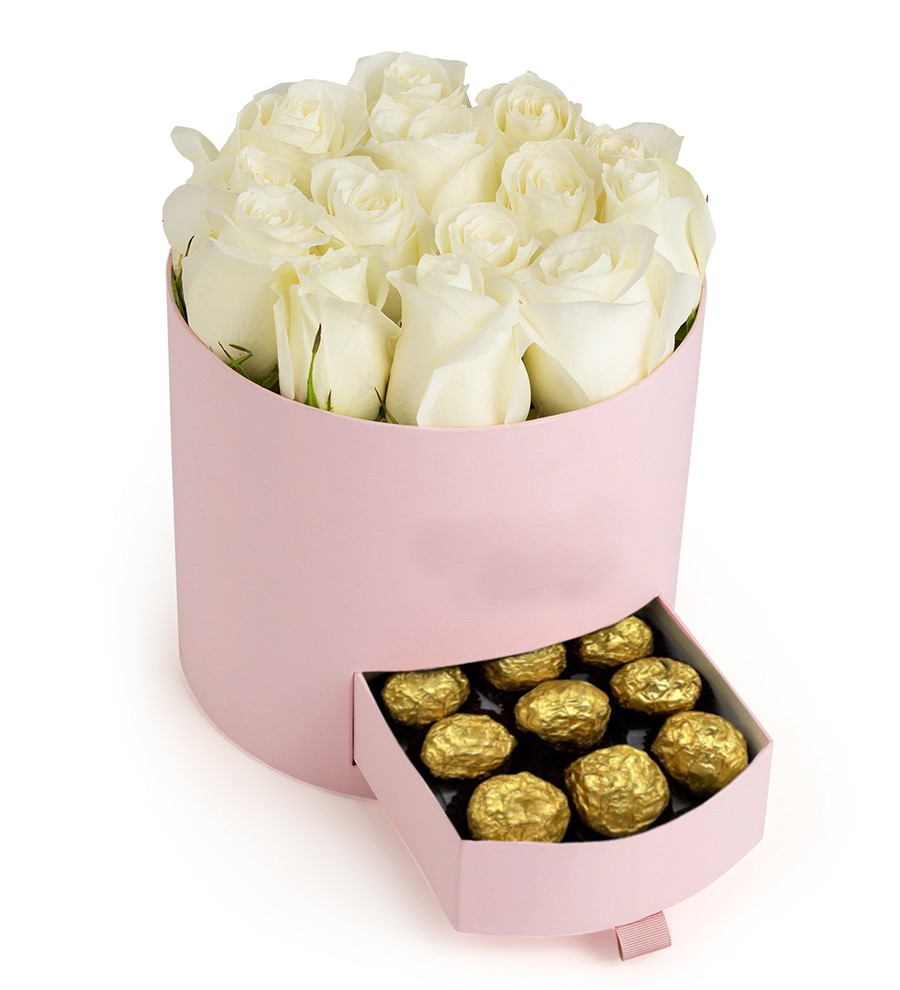 Pembe Kutuda Çikolatalı Beyaz Gül