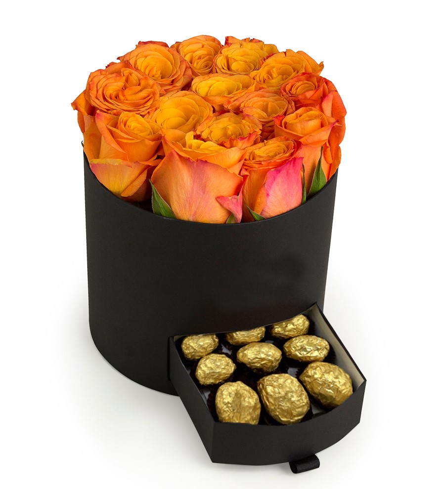 Siyah Kutuda Çikolatalı Turuncu Gül