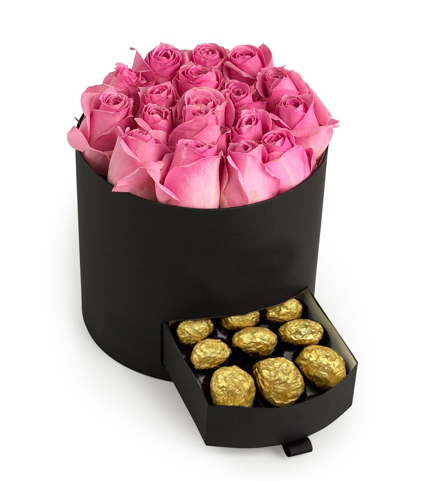 Siyah Kutuda Çikolatalı Pembe Gül