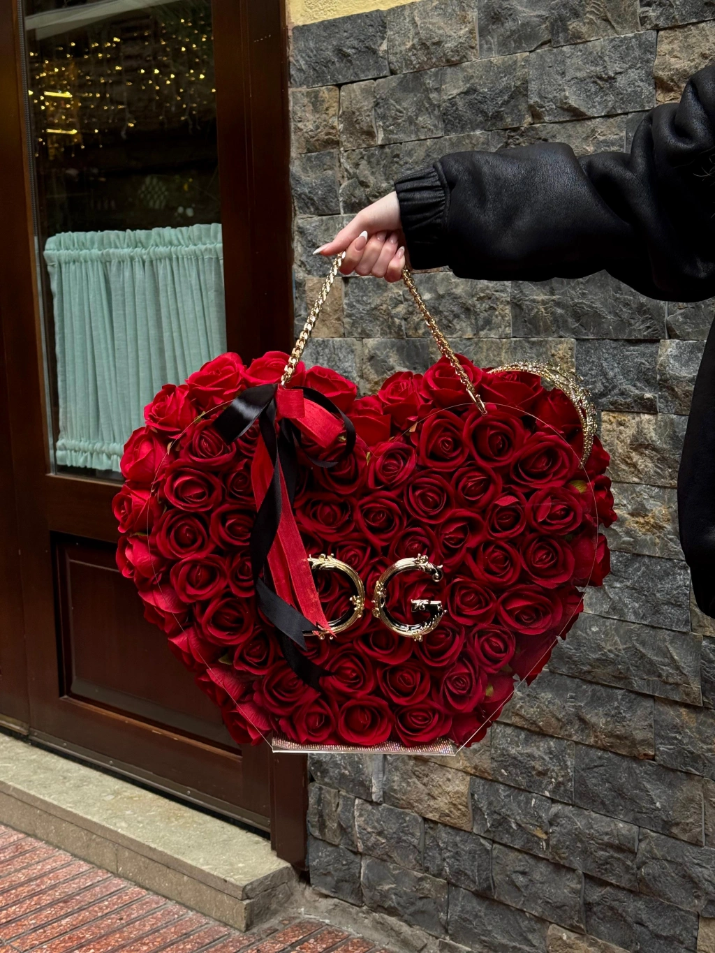Premium Kalp Çantada Kadife Güller